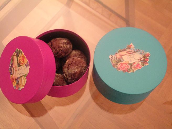 אבל לא פראיירית ישראל. טוב, אמרתי לבנזוג. ניסע להורים שלך. נתייבש בארוחות ערב של תפוחי אדמה ובשר עם התבלין האקזוטי מלח, אבל פורים אני אחגוג! הודעתי להורים שלו שנשלב גם את החג היהודי בחג שלהם. הם דווקא שמחו, הם תמיד שמחים ללמוד על הדת המעניינת שלנו ("ליהודים יש דברים מאוד מיוחדים בחגים!" איבחנה אמא שלו פעם). מה זה אומר? ובכן, ביליתי את אחה"צ בהכנת משלוחי מנות, כולל אפיית עוגיות שוקופוז, ההן מלפני ארבעה פוסטים, והפעם בגירסה עוד יותר בריאה, לא רק קמח מלא, גם סוכר חום. את העוגיות הנחתי בקופסאות שעיטרתי לבד (לא הייתי כל כך יצירתית מאז היסודי, בחיי). תמונה למעלה. חוץ מזה אני אסחוב איתנו לאי את שק התחפושות שלי, ואכריח את ההורים שלו להתחפש לכבוד ארוחת החג שלהם. יש לי בשק התחפושות תחפושת של חתול, שתי תחפושות של שטן ותחפושת של מלכת סאדו-מאזו. חשבתי לתת לאמא שלו את האחרונה. מה, בבדיחות הדעת, זה הרי חג של שמחה, לא?