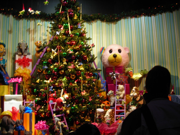 ולא רק זה. בתוך הכלבו עצמו, בכניסה הראשית, יש חלל בגובה ארבע/חמש קומות. שם, הם תולים מהתקרה עץ כריסמס ענק, שמגיע כמעט עד קומת הקרקע. (וחבל, התמונות לא מספיקות בשביל להעביר את הגודל העצום של העץ הזה).