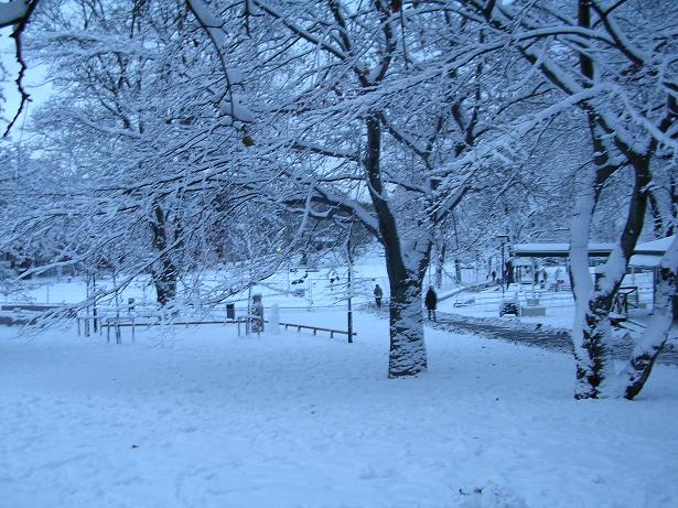 אז יש להודות שאני די מתה שיפסיק השלג, ויימס מהר, כדי שאני אוכל לשוב ולדווש. כך היום, כשהבוקר התחיל בלבנוניות אפורה, זה לא נראה מבטיח. הנה תמונה מהפארק שליד תחנת האוטובוס. ממש ממלכת החורף.
