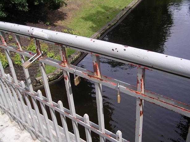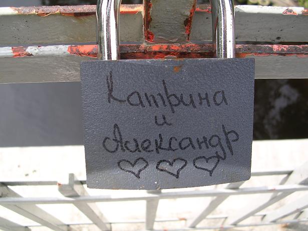 ממבט ראשון חשבתי שהמנעולים הם רק הדרך הלטבית לתחזק גשרים, אבל במבט שני אנחנו מגלים שעל כל מנעול יש הקדשה חרוטה או כתובה. כמו זו: