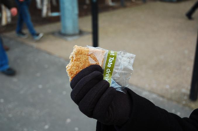 ביציאה מהטייט קניתי לי עוגה שראיתי עד היום רק באנגליה, ואני מתה עליה. קוראים לזה Flapjack (אני כמובן אכלתי את הגירסה האנגלית ולא האמריקאית) ויש לה טעם של חמאה וטופי. יאממי.