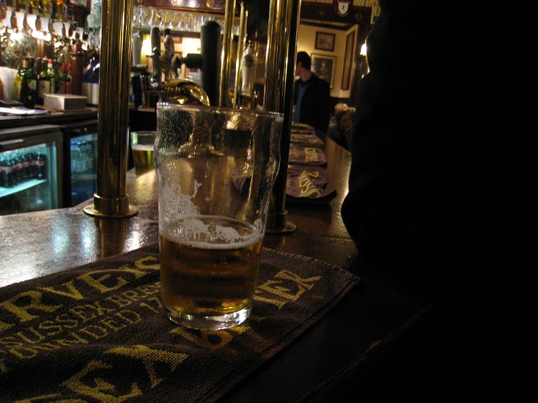כולי אופטימית לגבי יכולת השתייה שלי ומתעלמת מהעובדה שאני ממוטטת מעייפות וקיבתי ריקה לגמרי, שתיתי כמה חצאי בירות. נייג'ל, האופנוען ואני נהנינו מאוד בפאב.