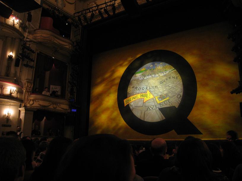 ומהפאב הלכנו למיוזיקל. אווניו קיו. זה מיוזיקל שמוגדר כ"רחוב סומסום למבוגרים". וזה בדיוק מה שזה זה. משתתפים בו שחקנים לצד בובות, ומדובר בשורה של קטעים שכולם קורים באותו רחוב, ומשולבים בהם קליפים מצוירים. רק שבמקום שהקטעים יעסקו בנושאים של ילדים, הם עוסקים בנושאים כמו גזענות, זוגיות ומחויבות, יציאה מהארון, קשיים כלכליים וכו.