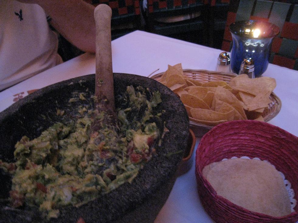 מלבד המרגריטות המשמחות (ולא הסתפקנו באחת) גולת הכותרת הייתה הגואקמולי. אתם מזמינים קערת גואקומולי לשניים, ומול עיניכם המשתאות מתייצב מלצר עם עגלה ועליה ערימת אבוקדו ותבלינים. מול עיניכם הוא מקלף, מועך, מוסיף עגבניות, כוסברה ושאר תבלינים, ואתם מתעלפים. היה גואקמולי כה מצוין ששכחתי לצלם עד שכמעט גמרנו אותו.