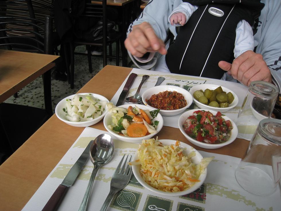 45 דקות אחרי גומבוץ הואיל בטובו לשבוע והתפנינו למצוא מקום שיאכיל גם אותנו. ברוח השוק היינו בעניין של מקומות אותנטים, אז חזרנו אליו. קודם כל נכנסנו למקום בשם רחמו, אלא שזה היה כל כך מלא שהבנו שבחיים לא נצליח למצוא שם שולחן באופן רגוע שיתאים לתינוק. מעבר לפינה מצאנו מקום בשם מורדוך, ושם דווקא היה שולחן פינתי שבול התאים לנו.