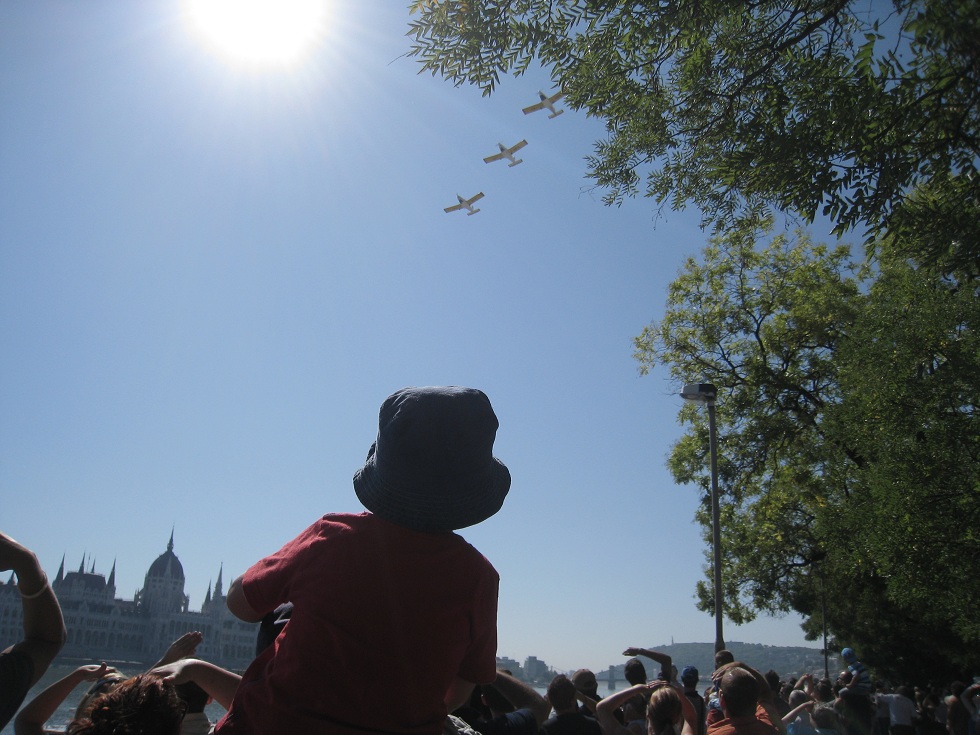 דבר ראשון התקיים על הדנובה מופע אווירי. שזה, בדיוק כמו שאפשר לראות כל יום עצמאות על חוף בוגרשוב רק במקום "מבנה של הרקולסים בצורת המספר 62 ואחריהם שני יסעורים המסמנים את הנשיא וראש הממשלה" מבנה של פייפרים עם הסברים בהונגרית, כך שאין לי מושג מה סימל מה.