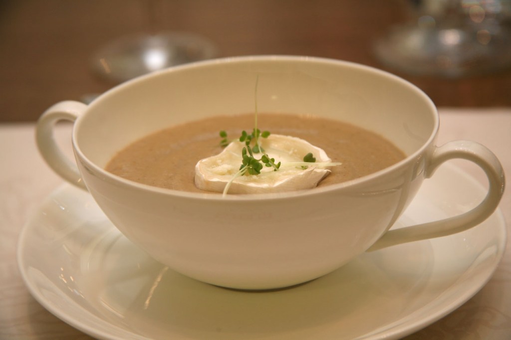 בעוד אנחנו מהרהרות בזה שהמרק הזה הוא מכה לכולסטרול, השף שלף עוד גבינת עיזים והורה לקשט כל צלחת עם פרוסה ממנה. שאלוהים יעזור.