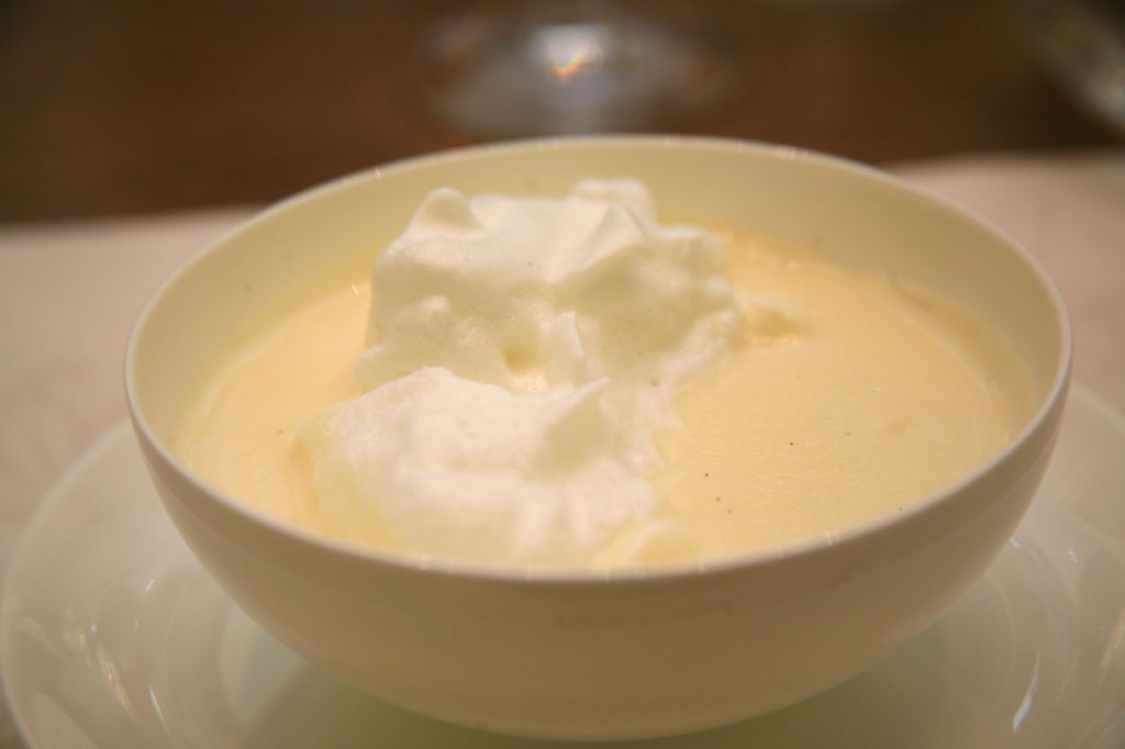 טוב, ישבנו לאכול. הצדפות היו מעולות. המרק היה יציקה עשירה (הסועדים המרושעים לקחו כל אחד כף אחת ומייד טענו שהם שבעים והלכה הארוחה כי הם לא יכולים יותר לאכול כלום), הדג היה סתמי, הקינוח היה זה: