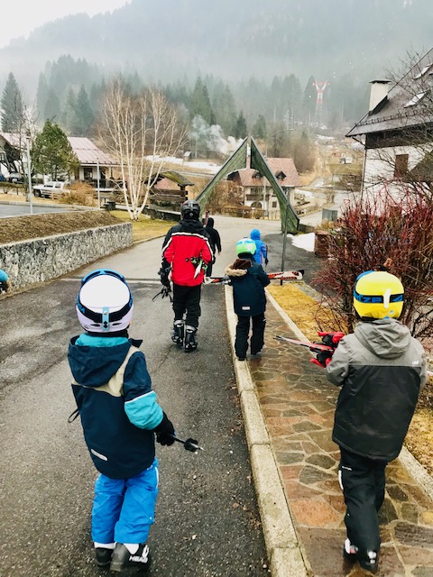 בבוקר הראשון גילינו איך זה עובד, כל חופשת הסקי הזו. הילדים מוינו לקבוצות לפי גילאים ורמות. ההורים עזרו להם בבוקר להיכנס לכל הנעליים/מגלשיים וכו, מסרו אותם לידי המדריכים שלהם ולא ראו אותם שוב עד ארבע אחר הצהריים. כן כן, אני יודעת, שאט אפ אנד טייק מיי מאני.