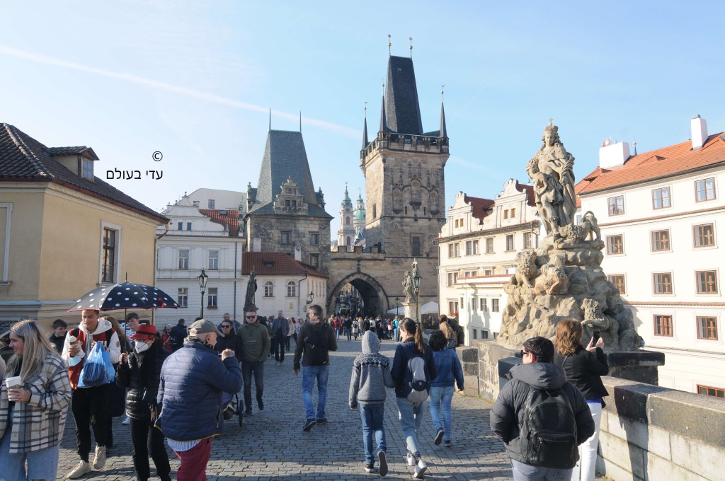 מהסמטה הזו צעדנו אל גשר קארל, שמחבר בין העיר העתיקה לעיר המודרנית יותר. הוא נחשב לנקודה תיירותית גדולה ולאורכו פזורים המון מוכרים שמציעים ציורים/מזכרות. מה שבטוח, הנוף ממנו מושלם.