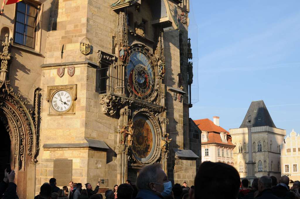 משם פסענו אל מרכז העיר העתיקה שוב. נתקלנו במה שמכונה "השעון האסטרונומי". זה שעון עם הרבה חוגות וגלגלים ובכל שעה עגולה יש תצוגה של בובות הקדושים שעליו, במן תיאטרון בובות חמוד.