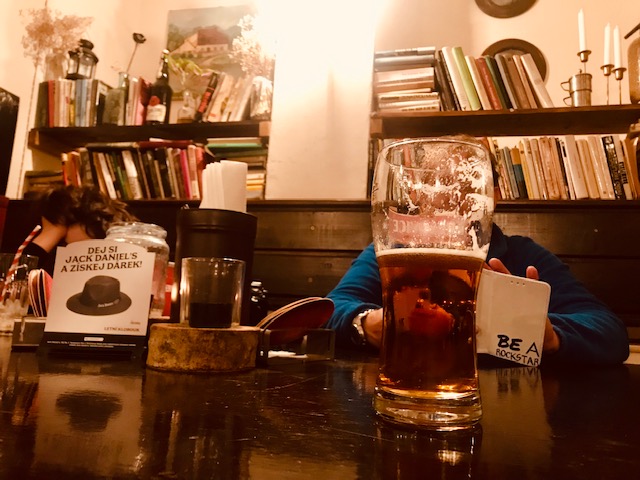חצינו בחזרה אל העיר העתיקה והתרכזנו בלמצוא מקום למטרתנו העיקרית בביקור בפראג: בירות צ'כיות. העדפנו להימנע מישיבה בפנים – גם כדי להנות מהשמש הסתווית וגם כדי להישאר בחלל פתוח כמה שאפשר. אז חיפשנו פאב קלאסי כזה, שמציע לעמוד בחוץ עם המשקה.