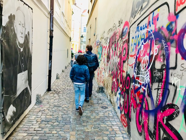 זו למשל סמטה צרה ובה תמונות שמספרות על ההתקוממות נגד הקומוניזם בפראג. זה לפי ציר זמן ועכשיו הילדים באמת יודעים הרבה יותר על פראג וההיסטוריה המודרנית שלה