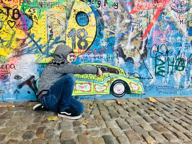 מהגשר ירדנו אל הגדה השנייה של הנהר והליכה קצרה הביאה אותנו אל קיר ג'ון לנון. הקיר מכונה ככה כי ביום הירצחו של לנון הופיעה שם כתובת גרפיטי לזכרו. השלטונות הסובייטים פחות אהבו ומחקו את זה, ומייד ניצתה שם מלחמת גרפיטי עם השלטונות. עם הזמן זה הפך לקיר שכולו גרפיטי ומחאה פוליטית.