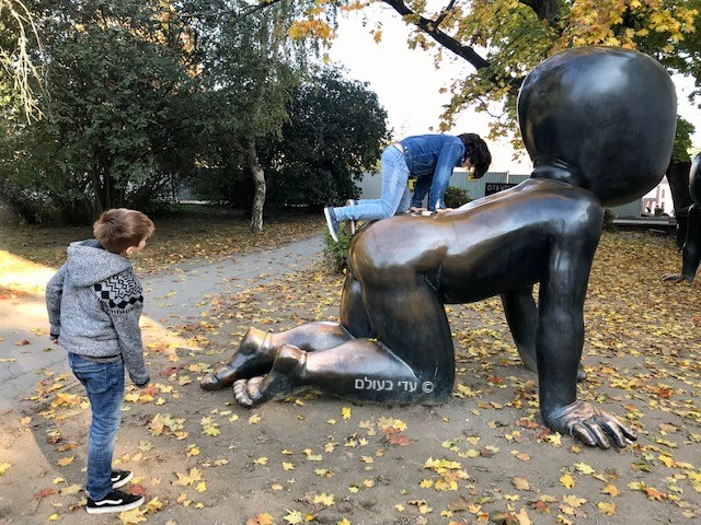 למה לטרוח ללכת לגינות שעשועים אם אפשר להיתקל בפסל של תינוק ענק ולתת לילדים לטפס על הטוסיק שלו?