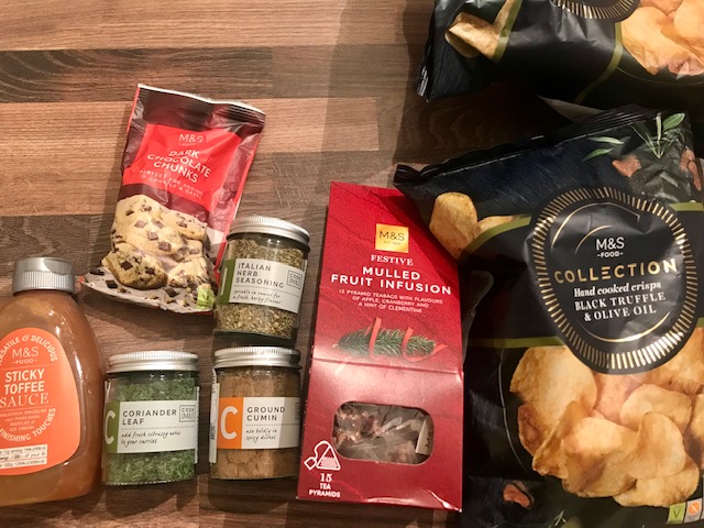 מאוחר יותר פרשתי בבית את שללי: תפוצ'יפס בטעם כמהין, תה בטעם של יין מתובל לכריסמס, תבלינים כמו כמון-שאינו-קימל (בהונגרית זו אותה מילה לכמון ולקימל וכמו מטומטמת כבר שנה שאני לא מצליחה לקנות כמון, רק קימל טחון, ממש ביזאר), רוטב טופי, וחבילת עוגיות בטעם של לונדון. אושר בשקית