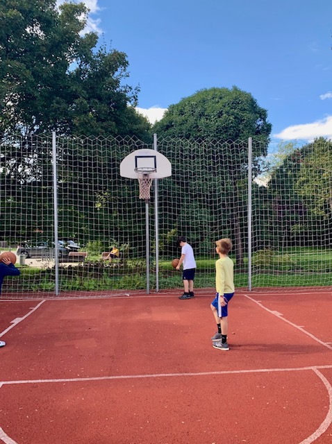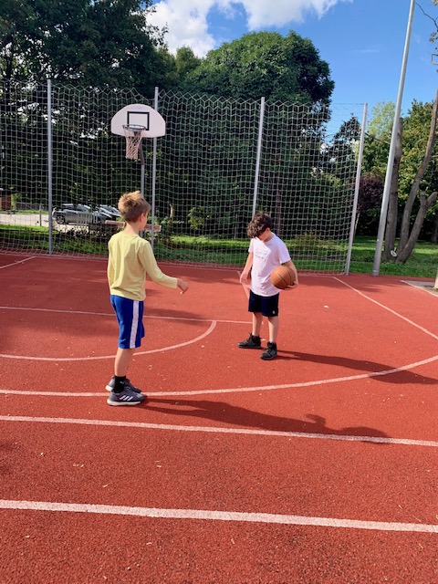 ברוח ההצלחה הפושרת החלטנו לנסות לעשות את מה שאפשר. כל אחד מאיתנו העניק לו שיעור ספורט בתחום שלנו. האופנוען לקח אותו לשחות איתו, והגומבוץ שב תפוס שרירים אבל סה"כ די מרוצה. הדובוש התלבט בין כדורגל לכדורסל והחליט לתת לגומבוץ שיעור כדורסל: