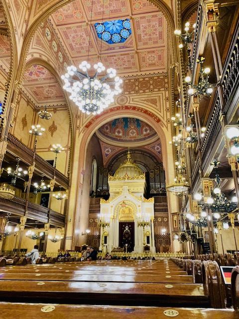 בשלב הבא יצאנו לבקר בבית הכנסת הגדול של בודפשט. מדובר בבית הכנסת הגדול באירופה, והוא מבנה יפהפה, במרכז העיר, שראינו הרבה פעמים מבחוץ ואף פעם לא ביקרנו בפנים (כלומר, אני עשיתי את הסיור שלו אי שם ב-2003, בחיים אחרים, לפני האופנוען, אבל חלפו עשרים שנה ובכל מקרה הילדים והאופנוען לא ראו).