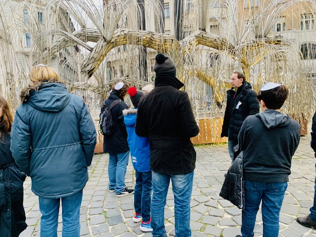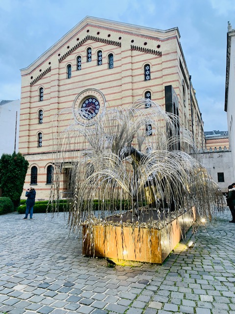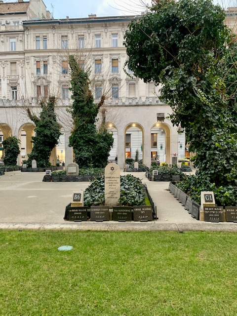 אחרי הסבר על פנים בית הכנסת ועל פוליטיקה של אירופה ושל יהודים, עברנו לסיור בחוץ. מלבד מבנה בית הכנסת יש בו גם חצר שיש בה בית קברות יהודי וגם אתר להנצחת קורבנות השואה של הונגריה.